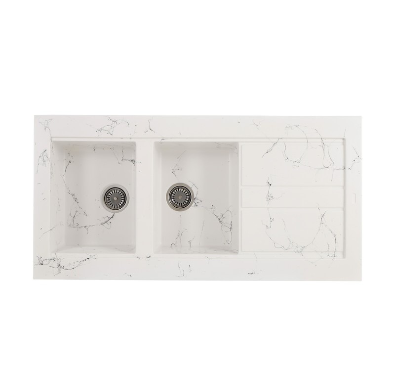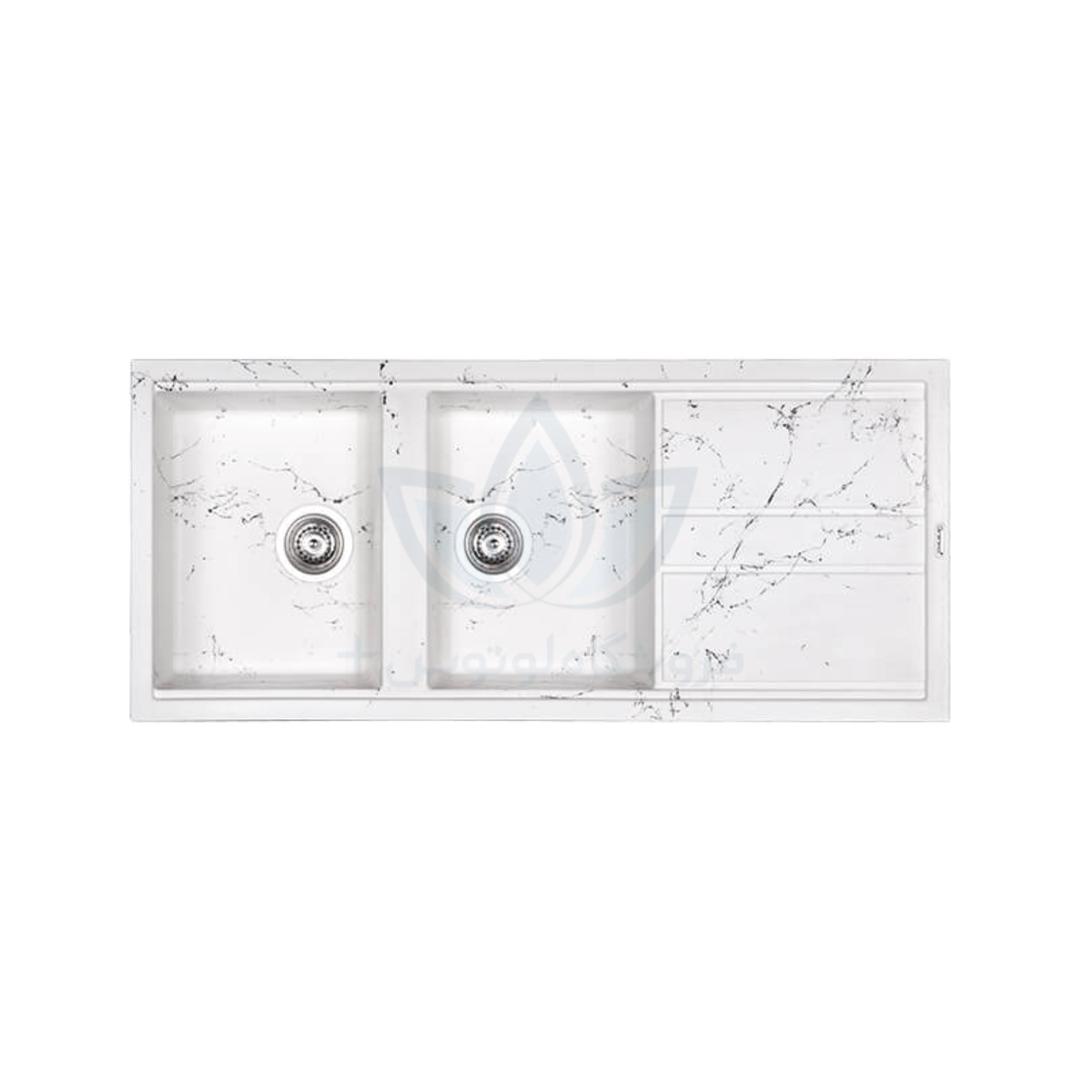 سینک گرانیتی سفید رگه دار سوپر فانتزی وارداتی آلمانی سایز 115 در 50 سانت توکار