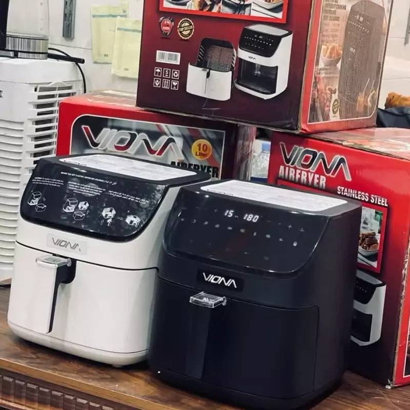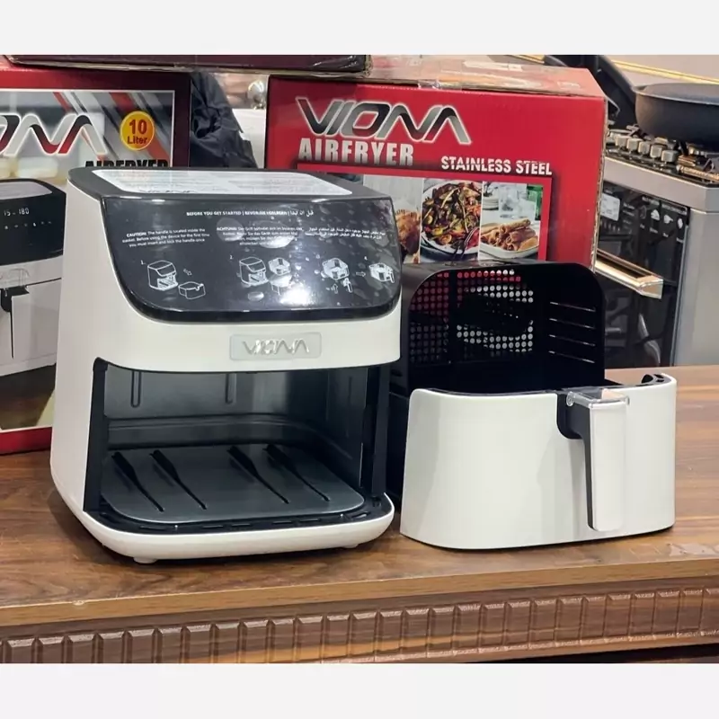 سرخ کن بدون روغن ویونا 10 لیتری شرکتی یکسال گارانتی یازده برنامه غذایی داخل استیل سفید و مشکی