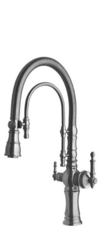 بدنه شیر از آلیاژ برنج با آبکاری باکیفیت ساخته شده و قسمت فنری آن، قابلیت چرخش ۳۶۰ درجه دارد که آزادی عمل بیشتری هنگام استفاده ایجاد میکند. ظاهر حرفهای و صنعتی این مدل در کنار دوام بالا، آن را به انتخابی محبوب در بین آشپزخانههای امروزی تبدیل کرده است.